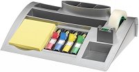 Органайзерът от LEITZ е изработен от висококачествена пластмаса с практичен дизайн, подходящ за позициониране във всеки офис или върху бюрото у дома. Има различни по размер и предназначение отделения и е оборудван с вградена тиксорезачка. Органайзерът е окомплектован с тиксо, жълти лепящи листчета с размери 7.6 x 7.6 cm и 4 броя индекси. Освен включените в комплекта пособия в него може да поставяте и съхранявате и други офис консумативи като химикалки, моливи, кламери и други. Органайзерът е с размери 25.6 / 6.8 / 16.8 cm. ... |