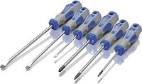 Отвертките на Gadget са изработени от висококачествена хром-ванадиева стомана за по-голяма здравина. Разполага с намагнетизиран връх и ергономична дръжка. Типът им е Slotted и Phillips и се предлагат по 6 броя в комплект. Вид и размери на отвертките: SL 3 x 100 mm SL 4 x 100 mm SL 5 x 100 mm PH1 4 x 100 mm PH1 5 x 100 mm PH2 6 x 125 mm ... |