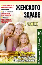 100 рецепти от Петър Дънов и Петър Димков. ... Проблемите с менструацията са решими. Да се избавим от кистите в яйчниците. Сбогом менопауза и метаболитен синдром. "В книгата "Женското здраве - част 1" от поредицата "Библиотека вестник "Доктор" сме събрали полезна и изчерпателна информация за най-честите заболявания и нарушения при момичетата, младите и по-зрелите дами. Първата част на книгата е посветена на менструацията. Главата започва с компетентното мнение на проф. д-р Милко Сираков, акушер-гинеколог в Университетската болница "Майчин дом" в София, началник на 3-та ... |