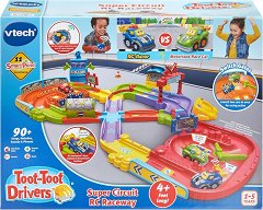 Втурнете се към върха с този мащабен състезателен комплект от Vtech, който стимулира уменията и любопитството на децата! Две коли се надпреварват по 120 cm писта, която може да се конфигурира по различни начини. Управлявайте автомобила с лесно за употреба дистанционно управление или се състезавайте срещу самоуправляващи се електрически превозни средства. Пистата разполага с 11 интерактивни сензорни точки, които задействат фрази, звукови ефекти и музика, както и с тунели, регулируеми порти и двойни изстрелвачи. Двете интерактивни коли имат светещи бутони и изпълняват забавни фрази, песни и мелодии на английски език, ... |