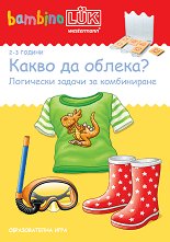 В книжката bambinoLUK (бамбиноЛюк): Какво да облека?, предназначена за деца от 2 до 3 години, са събрани 11 игри за концентрация, памет и наблюдателност, които тренират по забавен начин способността на децата за възприемане на информация, развиване на логическо и асоциативно мислене: Игрите, които ще откриете в книжката: Открий нещата в! Къде виждаш тези предмети? Къде е закачена дрехата на простора? Намери предметите в куфара! Какво носят децата на карнавала? Подреди спортните принадлежности! Какви дрехи са носили децата преди? Открий детето със същата престилка! Кой какво носи на сватбеното тържество? ... |