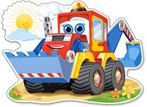 Детският пъзел от "Ravensburger" е изработен от дърво и боядисан с безвредни бои на водна основа. Той ще запознае малчуганите с 3 превозни средства, които могат да се забележат в строителните площадки. Комплектът се състои от основа за редене и 3 пъзелови елемента с форма на багер, фадрома и самосвал. Всеки елемент е с удобно за хващане пинче и пасва на точно определено място върху подложката. Пъзелът ще развива детската координация и усещане за цветове, докато го забавлява. ... |
