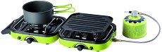 Газов котлон, предназначен за неравен терен, стабилен при приготвяне на храна в големи съдове за много хора. Най-стабилният от преносимите котлони. Газовата бутилка не е отдолу като при повечето котлони, а остава отстрани, свързана с мека връзка с котлона. 1 L вода завира за 6 min. Използва се с газови бутилки на винт. Характеристики: размери: 14.5 / 14.5 / 4.8 cm тегло: 0.220 kg ... |