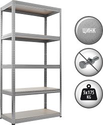 Стелажът на Carmen е предназначен за практично и сигурно съхранение в гаражи, складове, промишлени и други пространства. Изработен е от галванизиран метал за здравина и устойчивост на корозия и разполага с 5 просторни МДФ рафта. Безболтовият монтаж осигурява бързо и лесно сглобяване. Регулируемата височина на рафтовете позволява оптимално използване на пространството според нуждите. Стелажът е с размери 90 / 180 / 45 cm. ...