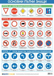Учебното табло "Основни пътни знаци" е ламинирано, с лайсни и въже за закачане. Таблото е с размери 70 x 100 cm. Таблото съдържа информация за: група "Б" - пътни знаци относно предимство; група "В" - пътни знаци за въвеждане на забрана и отменяне на въведена забрана; група "Г" - пътни знаци със задължителни предписания. ... |