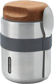 Термосът за храна Thermo Pot на Black+Blum е с компактен дизайн и е изработен от висококачествена неръждаема стомана. Има двустенна конструкция, която е вакуумно изолирана за максимално запазване на температурата на храната до 8 h, а корковата му капачка предотвратява случайното разливане на съдържанието и притежава вдлъбнатини за лесно отваряне и затваряне. Снабден е със стоманената пластина под капачката, така че храната да няма контакт с пластмаса и е оборудван с полиамидна лента за сигурно и удобно съхранение на лъжицата, която е включена в комплекта. Също така разполага с широко гърло за по-голямо удобство по време ...