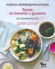 Новата аюрведична кухня. 100 сезонни рецепти. Аюрведа или науката за живота е древна традиция, която използва вкусна и прясна храна, за да подобрява здравето, благосъстоянието и баланса. В Храна за тялото и душата шеф-готвач Дивя Олтър представя разнообразна и вдъхновяваща колекция от рецепти и съгражда мост от древната философия и мъдрост на здравословното готвене към XXI век. Със 100 сезонни рецепти за закуски, основни ястия, супи, салати, лакомства и напитки, тази книга с прекрасни фотографии съдържа полезни съвети за персонализиране на ястията според индивидуалните нужди и моментните хранителни състояния, като ...