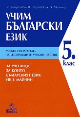 Помагалото е предназначено за ученици, за които българският език не е майчин. ... Помагалото "Учим български език" е съобразено с новите учебни програми по български език и литература за 5. клас, както и с Наредба № 6 от 11.08.2016 г. за усвояването на българския книжовен език. Замислено е като допълнение към действащите учебници по български език, за да се преодолеят затрудненията при обучението на учениците, за които българският език не е майчин. Обхваща всички теми от учебното съдържание по български език и темите за развиване на комуникативните компетентности чрез обучението по български език и литература. ... |