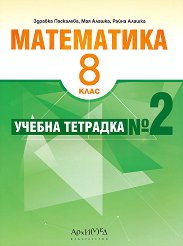 Тази учебна тетрадка по математика за 8. клас на издателство Архимед е предназначена за работа през 2 -рия срок и осигурява усвояване и задълбочаване на основните знания по темите - Еднаквости, Системи линейни уравнения с две неизвестни, Системи линейни неравенства с едно неизвестно, Окръжност и многоъгълник. Чрез нея се създават умения за решаване на основни и допълнителни задачи, решаване на тестови задачи, подреждане на решението на задача. Тя може да се използва за самостоятелна подготовка, домашна работа и проверка и оценка знанията на учениците. Учебната система по математика за 8. клас се състои от: ... |