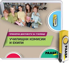 Настоящата флаш памет съдържа над 160 примерни документа, свързани с организацията и дейността на различни комисии и екипи в училището. Някои от тях са: комисия за организиране и провеждане на квалификационна дейност, за оценяване на постигнатите резултати от труда, атестационна комисия; комисия за изготвяне на седмично учебно разписание, за отчет на документи с фабрична номерация, за изготвяне/актуализиране на годишния план за дейността на училището; комисия за прием на ученици в I и преместване в V клас, за план-прием в VIII и X клас, комисии за провеждане на национално външно оценяване и за провеждане на ... |