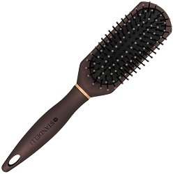Четка от "Titania" е подходяща за средно дълга и дълга коса. Тя е снабдена с пластмасови щифтове, с топчета по върховете, които са грижовни към скалпа и улесняват разресването. Щифтовете са прикрепени към гумена възглавничка, която поема натиска по време на ресане. Дължината на четката е 23.5 cm. ... |