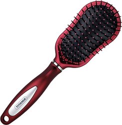 Четка от "Titania" е подходяща за дълга коса. Тя е снабдена с пластмасови щифтове, с топчета по върховете, които са грижовни към скалпа и улесняват разресването. Щифтовете са прикрепени към гумена възглавничка, която поема натиска по време на ресане. Дължината на четката е 23.5 cm. ... |