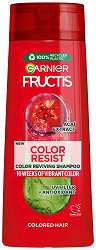 Шампоанът от Garnier укрепва и подхранва боядисаната коса. Той нежно я почиства и поддържа цвета ѝ сияен до 10 седмици*. Формулата му е обогатена с екстракт от акай бери, който подхранва косъма и му придава копринена мекота и блясък. Включените антиоксиданти и UV филтри помагат за запазване на цвета на боядисаната коса. При редовна употреба, шампоанът подсилва косата, прави я гладка и сияйна. * Инструментален тест при употреба на шампоан и балсам Garnier Fructis Color Resist. ... |
