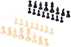 Комплектът фигури за шах от "Modiano" съдържа 34 фигури. Те са изработени от пластмаса и пасват на всякакъв тип дъски за шах. Към комплекта има 2 допълнителни царица в бял и черен цвят. Размери: пешка - 2 х 3.5 cm кон - 2.5 x 4.5 cm топ - 2.6 x 3.6 cm офицер - 2.6 x 5 cm цар - 3 x 7.7 cm царица - 3 x 6 cm ...