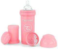Бебешкото шише за хранене на "Twistshake" е изработено от висококачествен полипропилен без съдържание на BPA, BPS и BPF, който е безопасен и устойчив при продължителна употреба. Шишето е с вместимост 260 ml и широко гърло, което улеснява пълненето му с течност и неговото почистване. Биберонът е произведен от мек и устойчив силикон, който не дразни нежните бебешки венци и е подходящ за бебета над 2 месеца. Разработената от "Twistshake" система "TwistFlow" не позволява поглъщането на въздух от бебето по време на хранене и подава равномерно храна, като по този начин намалява значително бебешките ... |