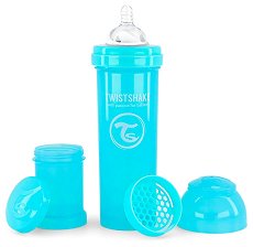 Бебешкото шише за хранене на "Twistshake" е изработено от висококачествен полипропилен без съдържание на BPA, BPS и BPF, който е безопасен и устойчив при продължителна употреба. Шишето е с вместимост 330 ml и широко гърло, което улеснява пълненето му с течност и почистването му. Биберонът е произведен от мек и устойчив силикон, който не дразни нежните бебешки венци и е подходящ за бебета над 4 месеца. Разработената от "Twistshake" анти-коликова система "TwistFlow" не позволява поглъщането на въздух от бебето по време на хранене и подава равномерно храна, като по този начин намалява значително ... |