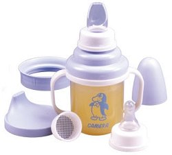 Преходната чаша на Camera е с вместимост 180 ml и спомага за по-лесен преход от хранене с шише към използване на чаша. Тя позволява да се използва в няколко възрастови диапазона. Чашата има силиконов биберон, който е подходящ за бебета над 3 месеца. След 4-ия месец може да премахнете биберона и да го смените със силиконовия накрайник, който е нежен към детските венци. А след 6-ия месец може да поставите капачето с твърд накрайник на чашата. В комплекта са включени дръжки, които може да използвате след като детето порасне достатъчно за да я държи самостоятелно и капаче, което изцяло затваря чашата и позволява да я носите ... |