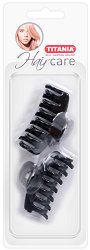 Комплектът щипки за коса от Titania се състои от 2 броя пластмасови щипки. Те захващат стабилно косата в желаната прическа. Размерът на всяка една от щипките е 4 cm. ... |