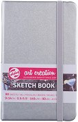 Скицникът Shiny Silver от серията Art Creation на Royal Talens е идеален за рисуване, скициране или водене на дневник. Съдържа 80 листа с плътност 140 g/m 2. Хартията е изработена без съдържание на киселина, има гладка текстура в кремаво бял цвят. Подходяща е за използване с молив, пастел, акрил, гваш, мастило, въглен. Плътността ѝ позволява нанасяне на вода в умерени количества, с леки отмивания на акварелни маркери и моливи. Скицникът има твърди корици в сребрист цвят. Затваря се с плосък ластик по периферията. Оборудван е със сатенен разделител за отбелязване на страницата. Страниците му са ... |