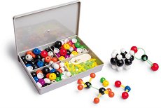 Оборудването на комплекта позволява изграждането на модели на химични съединения. Той помага да се демонстрира принципът на свързване между атомите в три измерения. Практическите дейности на учениците, използващи този образователен комплект, подпомагат тяхното разбиране на основните понятия в химията и подобряват пространственото въображение, необходимо в тази област на науката. Атомите на елементите са представени от цветни сфери с различен брой дупки, което помага да се демонстрира, например, валентността на елементите. Свързването става посредством издръжливи пластмасови тръбички с различна дължина и са оцветени, за да ... |