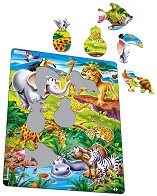 Дървеният пъзел от Melissa & Doug ще се хареса на децата. Върху здравата, дървена дъска има 8 африкански животни, които децата трябва да подредят. За това им съдействат картинките, под формата на всяко от животните. Така децата могат да се ориентират лесно, къде да поставя фигурките. Играта с пъзела спомага за развиването на фината моторика на децата, а посредсвтом фигурките могат да се измислят различни ролеви игри. Пъзелът е подходящ за деца над 2-годишна възраст. ...