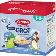 Млечните инстантни каши "Лека нощ" на Semper са хранителна и лесноусвоима вечерна храна, която подпомага спокойния сън на вашето бебе. Кашата с ябълка и канела е зърнена и подходяща за малки деца на възраст от 1 до 3 години. Приготвена е на основата на овес и пшеница и съчетава класическата комбинация от ябълка и канела, която е добре приета от децата. Подходяща е както за вечерно хранене, така и за консумация през деня. Кашата е с балансиран хранителен състав и съдържа само естествено срещащи се захари. Съставът е обогатен с желязо, йод, калций и витамин D, които допринасят за нормалния растеж и развитие на ... |