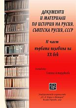 Съставител: Татяна Астарджиева. ... Първата половина на XX век. Учебното помагало цели да подпомогне семинарните занятия и подготовката за изпита на студенти, изучаващи историята на руската, респективно съветската държава през посочения период. В учебното помагало е използван хронологично-тематичният принцип. Подбраните документи са разделени в пет основни глави, съответно с параграфи. Не малка част от документите са вече публикувани в издадените христоматии, като например в Христоматия по история на СССР, С. 1983 г. Включени са нови материали, непубликувани досега на български език. Използвани са архивни източници ... |