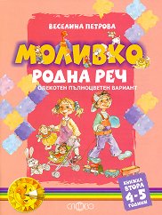 Помагало за развитие на устната реч на деца на 4-5 години. Дидактичната система Моливко за 2. възрастова група се състои от: помагало Родна реч помагало Родна реч - 2 книжка помагало Картинни загадки помагало В страната на математиката помагало С Моливко играй и мисли помагало Прозорче към света помагало От земята до небето помагало Мога да направя сам помагало Приказни игри чудесни помагало С четка и боички рисуваме самички книга за учителя книга за учителя по изобразително изкуство, музика и физическа култура книга за учителя Познавателни и математически тестове помагало Моторика ... |