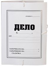 Папката Дело е изработена от картон. Тя е подходяща за съхранение на документи и листове с формат A4 или по-малки. Разполага с връзки за затваряне и обособено място за надписване, което прави етикетирането на съдържанието много лесно. ... |