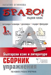 Този сборник за 1. клас е създаден по молба на преподаватели в начална образователна степен. Сборникът съдържа само оригинални авторски текстове, написани с доказан творчески и методически професионализъм от Наталия Огнянова. Сборник Браво! е разработен за 1. клас в 5 части. Първата част съдържа: над 300 богато илюстрирани разнообразни задачи и подзадачи за самостоятелни практически упражнения в буквения период на обучение; самодиктовки; задачи за звуков и буквен анализ; граматични упражнения; задачи за съзнателно четене. Учебно-помощната система по български език и литература за 1. клас на издателство ... |