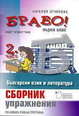 Този сборник за 1. клас е създаден по молба на преподаватели в начална образователна степен. Сборникът съдържа само оригинални авторски текстове, написани с доказан творчески и методически професионализъм от Наталия Огнянова. Сборник Браво! е разработен за 1. клас в 5 части: За първи клас системата съдържа над 900 богати илюстровани задачи и подзадачи за самостоятелни практически упражнения в буквения и следбуквения период на обучение: самоподготовки, задачи за звуков и буквен анализ, граматични задачи, задачи за съзнателно четене, задачи за краснопис, за конструиране на текст, над 1950 думи, 250 изречения и 39 ... |