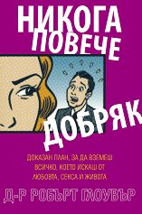 Доказан план, за да вземеш всичко, което искаш от любовта, секса и живота. Книгата разказва за проблема на безброй мъже и не е хроника за успехите им, а за техните грешки! Никога повече добряк промени живота, като даде посока и надежда на хиляди мъже и жени по света! Никога повече добряк ще те напътства в живота ти да тръгнеш в много различна посока, ще те накара да израснеш и да бъдеш интегриран и уникален с твоята сила, самоувереност, смелост и страст, както и твоите несъвършенства, грешки и тъмни страни. Не е нужно да бъдеш по-добър, за да си харесван и обичан, да задоволяваш нуждите си или да имаш хубав живот. ...
