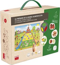 Играта е асоциативна и се играе чрез хвърляне на зар, като в зависимост от цвета, който се падне, се попълва пирамидата с карти със съответния тип храна. Цвета на храните е базиран на това, колко често трябва да се ядат те - зелено - често, жълто - понякога, червено - от време на време (рядко). След сглобяване, пирамидата е с размери 67 x 46 cm и заедно с другите неща от комплекта се съхраняват удобно в пластмасово куфарче. Метод на игра и препоръки: Залепете цветните стикери върху страните на зара - 3 зелени, 2 жълти и 1 червен. Подредете пъзела-пирамида. Поставете картите с храна с лицето на горе и ги ...
