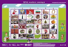 Таблото Малки умници е част от учебния комплект Светът е на децата по гражданско, здравно, екологично и интеркултурно образование за 6 - 7-годишни деца. Предназначено е за използване на интерактивен подход в преподаването. Ученето заедно спомага на децата практически да се учат на толерантност, зачитане мнението на другия, колективно решаване на различни проблеми и спазване на правила. Таблото е с размери 100 x 70 cm и е предназначено за настолна игра. Към него са включени и 2 броя зарчета. Учебната система Светът е на децата по гражданско, здравно, екологично и интеркултурно образование за 6 - 7-годишни деца се ... |