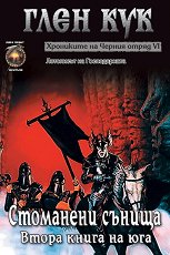 Втора книга на юга. ... Летописът разказва събитията при завръщането на Черния отряд към своите корени в Катовар, видени през очите на Господарката. Отправили се на юг в търсене на своята предистория, наемниците се оказват намесени в политическите кроежи на управниците на градовете, които се намират на границата със Сенчестите земи. В решителната битка край Талиос отрядът губи битката, но спасява града. Господарката става новият Капитан и продължава мисията на наемниците, въпреки коварството на жреците и градоначалниците, за спасяване на тамошното население от прокобата на оцелелите Сенчести господари. Нейни съюзници са ... |
