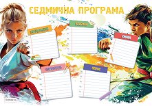 Напиши часовете от програмата за училище и бъди винаги подготвен със седмичните програми на Перфекта! Програмата допълва перфектно колекцията с ученически тетрадки Бойни изкуства. Открий всички програми за училище на издателство Перфекта. ... |