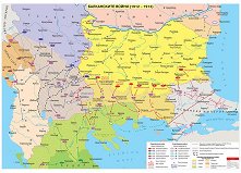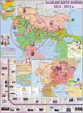 Стенна карта на събитията от Балканската и Междусъюзническата войни. Размер на картата: 140 x 100 cm. ...