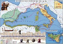 Историческа карта на Пуническите войни 264 - 146 г. преди Христа. Размер на картата: 140 x 100 cm. ...