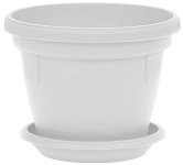 Бялата пластмасова саксия е една от най-предпочитаните и практични за декорация на цветния ви кът в градината. Тя е изработена от качествена и плътна пластмаса, която е устойчива на атмосферните влияния и заедно с универсалният бял цвят, правят кръглата саксия от серията "Гербер" една от най-използваните саксии както от любителите на цветята, така и от професионалните озеленители. Пластмасовата саксия е с кръгла форма, която се стеснява към дъното. По стените на саксията липсват оребрения. Единствената декорация са три малки релефни гербера. На дъното на саксията са разположени 12 малки отвора, през които се ... |