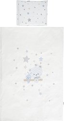 Спалният комплект е част от серията Небе, в която ще откриете още бебешки и детски продукти по темата. ... Спалният комплект за бебешко креватче на Lorelli се състои от долен чаршаф, възглавница, калъфка за възглавница, олекотена завивка и плик за завивка. Той се отличава с ефектно декориран десен, благодарение на който без усилие ще превърнете креватчето на вашето бебе в уютно и красиво място за сън и игри. Комплектът е изработен от 100% памучен ранфорс, който е приятен на допир до чувствителната бебешка кожа, а пълнежът на възглавницата и олекотената завивка е направен от 100% полиестерна вата. Долният чаршаф е с ... |
