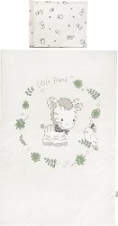 Спалният комплект е част от серията Happy Friends, в която може да откриете още бебешки и детски продукти по темата. ... Спалният комплект за бебешко креватче на Lorelli е с 2 лица и се състои от долен чаршаф, възглавница, калъфка за възглавница, олекотена завивка и плик за завивка. Той се отличава със стилно съчетани цветове и ефектно декориран десен, благодарение на който без усилие ще превърнете креватчето на вашето бебе в уютно и красиво място за сън и игри. Комплектът е изработен от 100% памучен ранфорс, който е приятен на допир до чувствителната бебешка кожа, а пълнежът на възглавницата и олекотената завивка е ... |