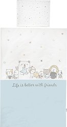 Спалният комплект е част от серията Happy Friends, в която може да откриете още бебешки и детски продукти по темата. ... Спалният комплект за бебешко креватче на Lorelli е с 2 лица и е изработен от висококачествена материя със състав 100% памук ранфорс, който е нежен на допир до деликатната бебешка кожа. Той се отличава със стилно съчетани цветове и ефектно декориран десен, благодарение на който без усилие ще превърнете креватчето на вашето бебе в уютно и красиво място за сън и игри. Комплектът се състои от долен чаршаф, калъфка за възглавница и плик за олекотена завивка. Долният чаршаф е с размери 100 x 150 cm и е ... |