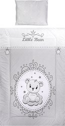 Спалният комплект е част от серията Мече, в която ще откриете още бебешки и детски продукти по темата. ... Спалният комплект за бебешко креватче на Lorelli е с 2 лица и се състои от долен чаршаф, възглавница, калъфка за възглавница, олекотена завивка и плик за завивка. Той се отличава със стилно съчетани цветове и ефектно декориран десен, благодарение на който без усилие ще превърнете креватчето на вашето бебе в уютно и красиво място за сън и игри. Комплектът е изработен от 100% памучен ранфорс, който е приятен на допир до чувствителната бебешка кожа, а пълнежът на възглавницата и олекотената завивка е направен от 100% ... |