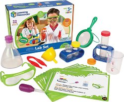 Комплектът от Learning Resources е подходящ за деца над 3 години, като помага за усвояването на научни понятия, включително обща научна лексика, наблюдение, причина и следствие и основна безопасност в научната лаборатория. Елементите изглеждат като истинско оборудване за научни лаборатории, а масивният им дизайн прави оборудването лесно за употреба от малки ръце. С комплектът могат да се извършват лесни за изпълнение от деца научни експерименти, описани в картите с дейности, като използвате материали, които са лесно достъпни у дома или в училище. 10-те карти с дейности могат да се изтриват, а включеното оборудване може ... |