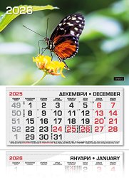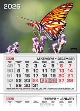 Характеристики на календара: 3 тела от 12 листа - на всеки лист по 1 месец (основен, предходен и предстоящ месец); фази на луната; имени дни; църковни празници; официални празници; съкращения на държавите, които честват свой празник на дадената дата; прозорче с ластици. ... |