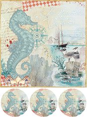 Шаблонът от "Cadence" е с дизайн на морски елементи - котва, рапан, морско конче, медуза, омар и надпис "Give me sand in my toes sun in my face & a drink in my hand". Той е изработен от здрав и пластичен материал в полупрозрачен цвят и е удобен за употреба върху различни по форма предмети и повърхности. С него може да добавите финален щрих към всеки подарък, картичка, албум, покана или други скрапбукинг проекти. Той може да бъде използван в измайсторяването на декорации за дома и декориране на различни повърхности - платно, картон, дърво, камък, текстил и други. Също така може да се употребява ... |