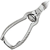 Клещите са изработени от висококачествена неръждаема стомана и са с никелово покритие. Специалистите на "Magnum" препоръчват този инструмент за рязане на по-твърди и дебели нокти на краката, тъй като остриетата могат да се отварят на около 2 cm. Остриетата са прецизно наточени, леко извити и са със заострени върхове, което помага за обработка на враснали нокти. Дължината на дръжките (приблизително 8 cm) дава допълнителна якост и сила на рязане. Те имат релефна повърхност, която осигурява по стабилен захват и не позволява лесно изплъзване от ръката. Дължината на целия инструмент е около 12 cm. Серията " ... |