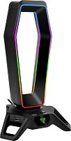 Стойката за слушалки 3003 Tower Gaming от Yenkee е задължителен аксесоар за всеки геймър. След като приключите онлайн битките, може да поставите своите слушалки върху нея, като по този начин ги предпазвате от наранявания и ги запазвате в най-добрата им форма за по-дълго. Дизайнът разполага с RGB подсветка, която не само ще се впише идеално към геймърския ви сет, но и ще допринесе за атмосферата на игрите. Дава възможност да избирате между 7 цвята чрез сензорния бутон в предната част на стойката. В случай, че не обичате светлини, може да ги спрете с натискането на само един бутон. 3003 Tower Gaming разполага с 3 USB ... |