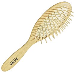 Висококачествена четка за масаж на скалпа. Изработена е от букова дървесина с восъчна основа. Дървените щифтове са поставени върху въздушна възглавничка от естествен каучук. Това е наистина качествен и траен продукт, подходящ за ежедневна употреба. Масажира нежно скалпа, а честото използване води до по-здрав вид на косата. Разресването подобрява кръвообращението и премахва мъртвите клетки. В резултат повече хранителни вещества достигат до косъма и той е по-силен и еластичен. Изработена от дърво, тази четка не създава статично електричество. Предлага се в две разновидности - със заоблени щифтове или със сфери в края им. ... |