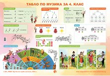 На таблото са представени основните понятия в музикалната теория - ключ, петолиние, синкоп и триола, трайности на нотите и паузите, метрум - равноделни и неравноделни размери, увеличения трайността на нотите и паузите. Таблото е с размери: 70 x 100 cm. ... |